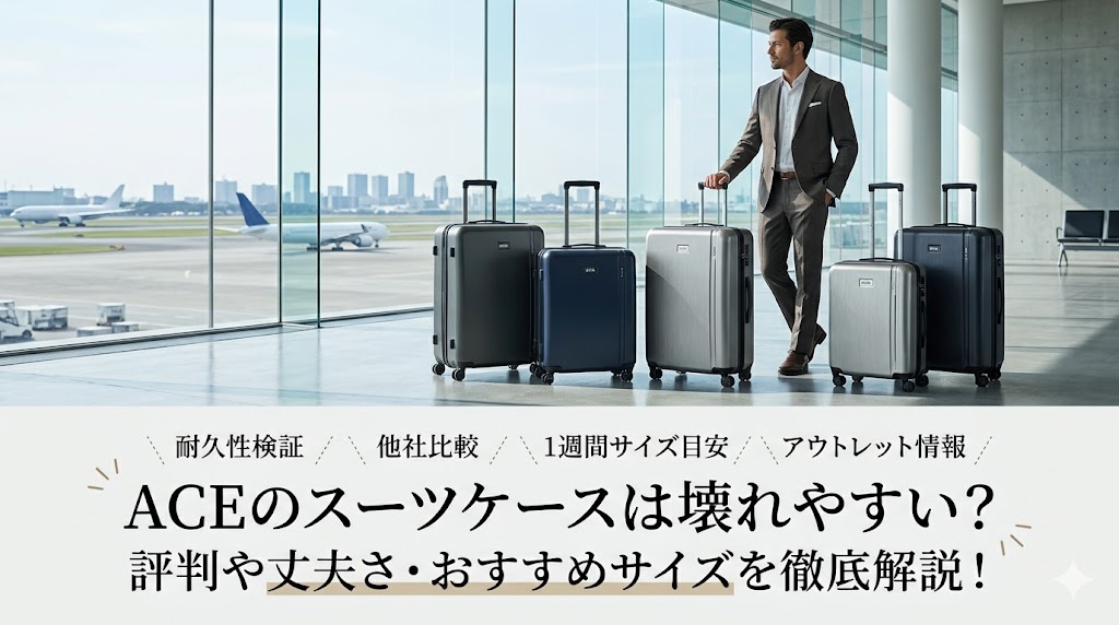 ACEのスーツケースは壊れやすい?評判や丈夫さ・おすすめサイズを徹底解説! 「スーツケース選びで絶対に失敗したくない」と考える際、日本を代表する老舗メーカーを候補に入れる方は多いはずです。 しかし、ネット上で「ACEのスーツケースは壊れやすい」... -