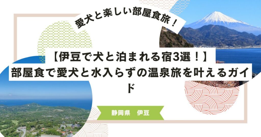 【伊豆で犬と泊まれる宿3選!】部屋食で愛犬と水入らずの温泉旅を叶えるガイド せっかくの伊豆旅行、食事中もずっと愛犬と一緒にいたいな。でも、レストランだと周りに気を使うし、お留守番させるのはかわいそう……。どこか、お部屋でゆっくり本格的なお料... -