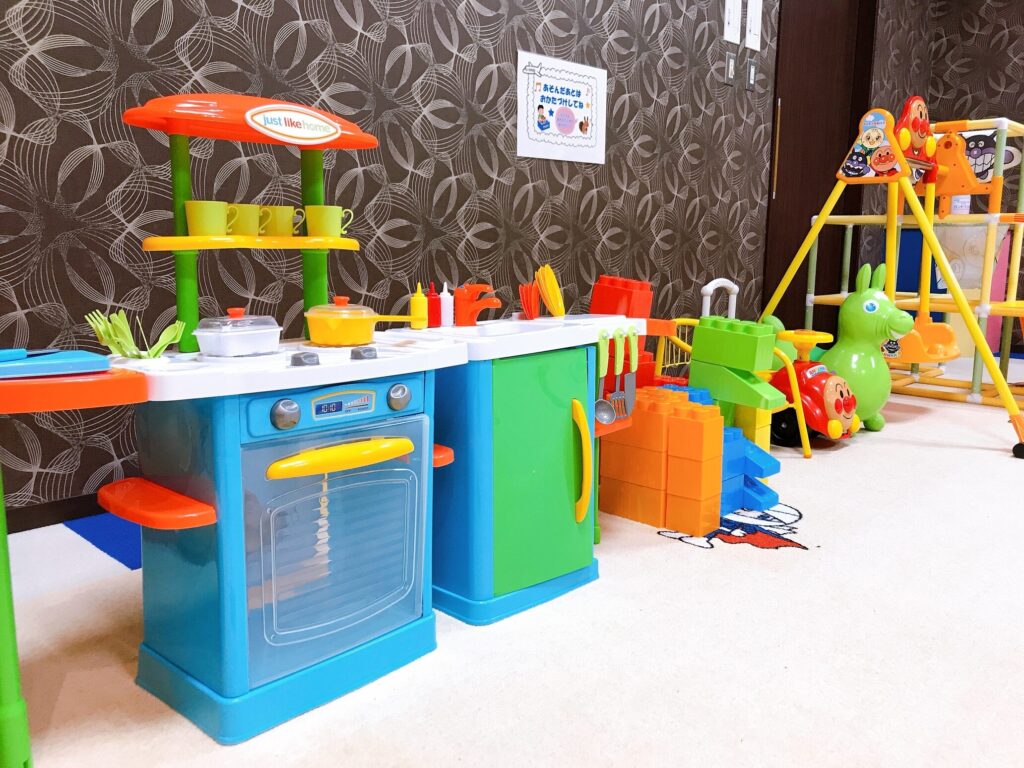 - 1階ロビーの近くに併設されたキッズスペースは、子どもが自由に遊べるスペースとして提供されています。遊具やおもちゃ、絵本などが用意されており、チェックイン後や夕食後の空き時間、あるいは天候の悪い日でも、子どものエネルギーを発散させ、飽きさせずに過ごすことができます。