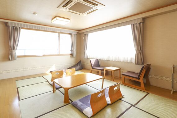 - 靴を脱いで畳で過ごせる和洋室タイプの客室が用意されています。小さな子ども連れでも安心してくつろげ、お布団を敷いて添い寝できるため、ベッドからの転落の心配が少なく、安心して眠れます。