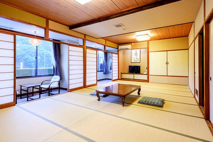 - 本館は畳の和室が中心で、部屋の広さの種類も豊富。布団で川の字で寝たいファミリーや、ゆったり過ごしたい旅行にぴったりです。広めの間取りで、子ども連れでも快適に過ごせます。