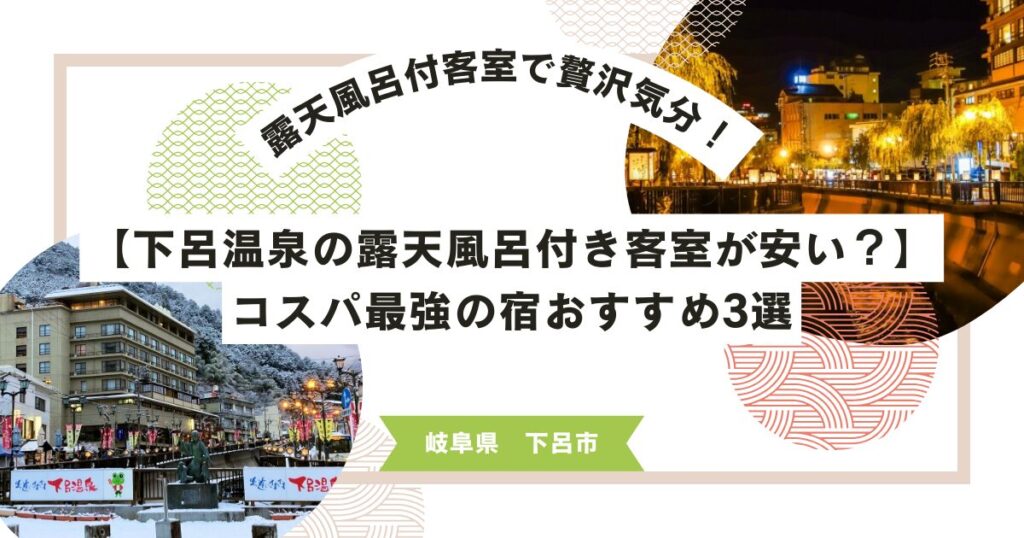 【下呂温泉の露天風呂付き客室が安い?】コスパ最強の宿おすすめ3選 下呂温泉で「客室露天風呂付き」って憧れるけど、やっぱり高いイメージよね。でも、できるだけ安く、コスパ良く贅沢を楽しめる宿があるなら今すぐ知りたい! 日本三名泉の一つとして、古... -
