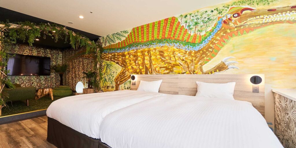 モダンな客室とサプライズ満載の恐竜コンセプトルーム