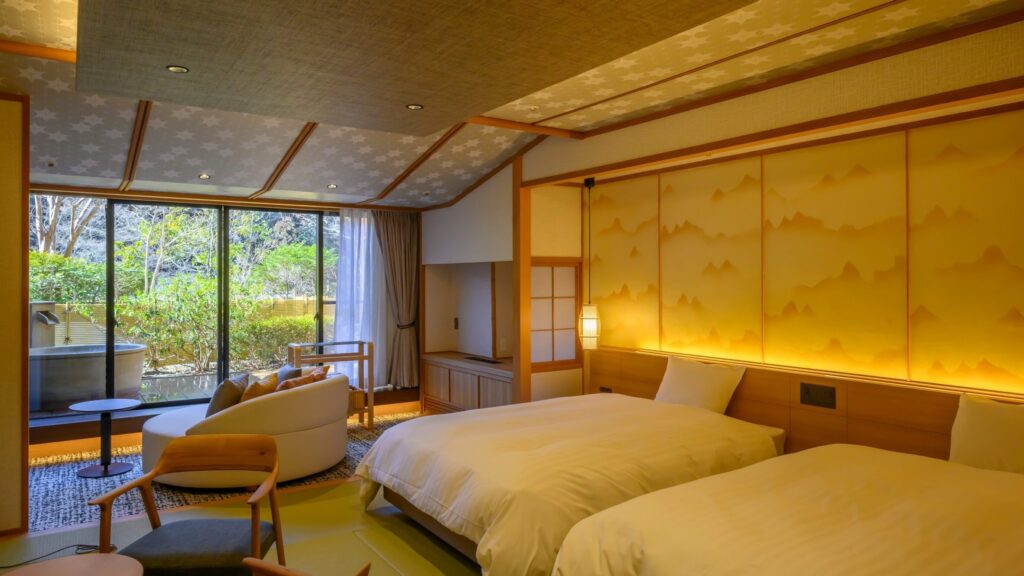 - 露天風呂付き客室やアメニティ、フリードリンクなどサービス面の違い