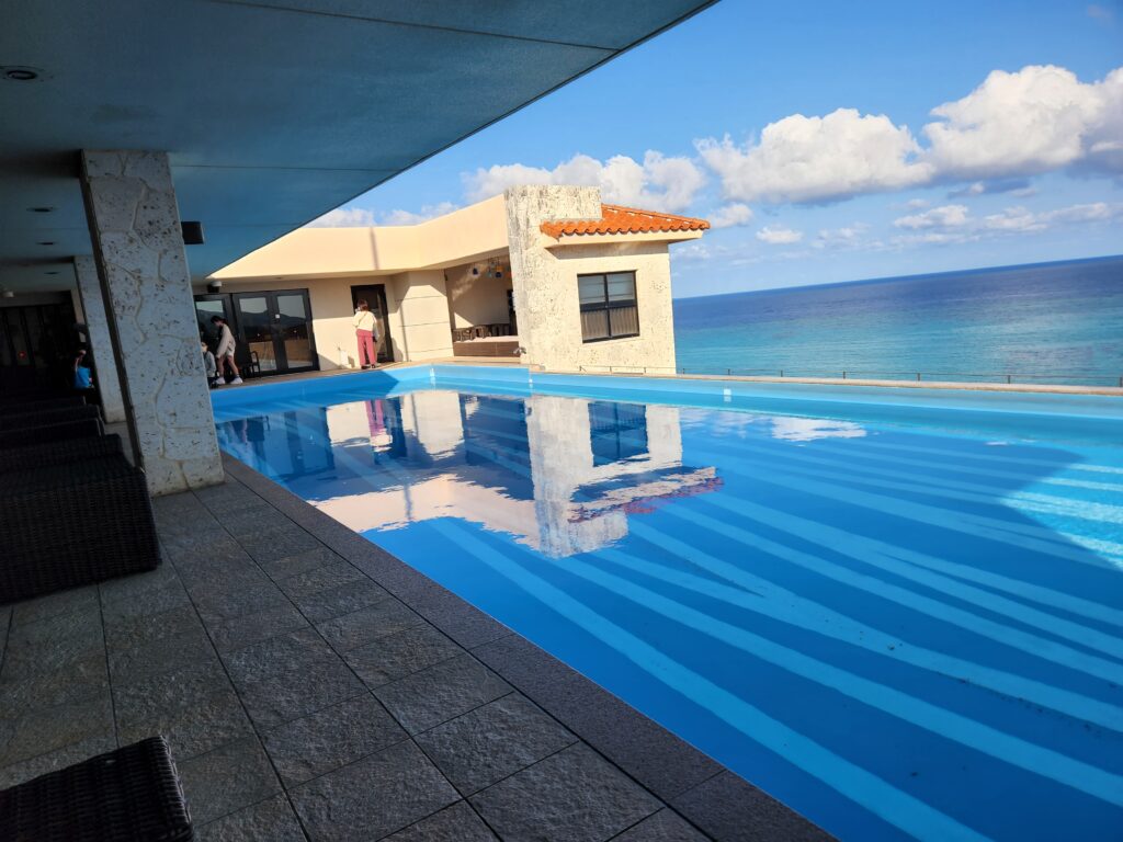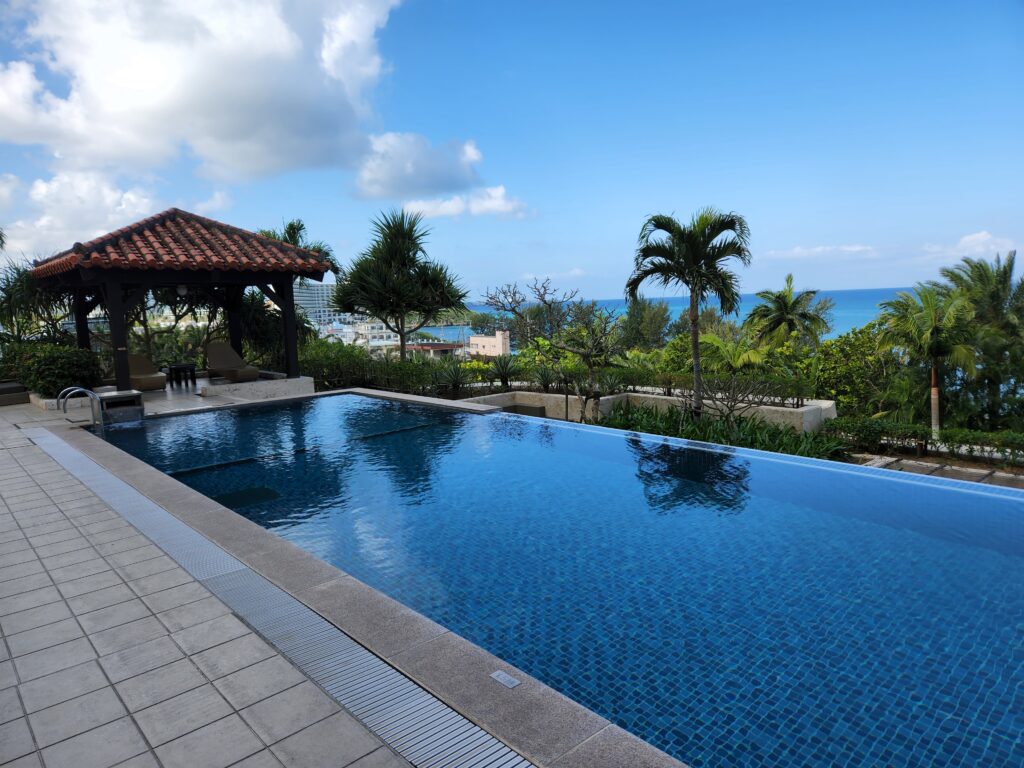 - 絶景の特権: 最上階に海と空が溶け合うインフィニティプールと、名物アグー豚しゃぶしゃぶのレストランがある。