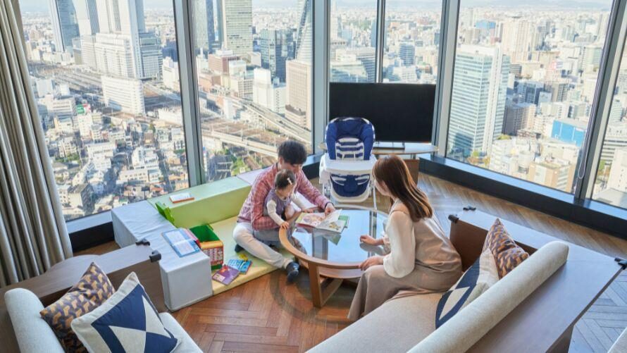 地上31階から36階が客室という高層ホテルで、その眺望はまさに絶景。しかし、このホテルの魅力は景色だけではありません。ミキハウス子育て総研が認定する「ウェルカムベビーのお宿」として、赤ちゃんや小さなお子様連れのファミリーを全力でサポートしてくれる体制が整っています。