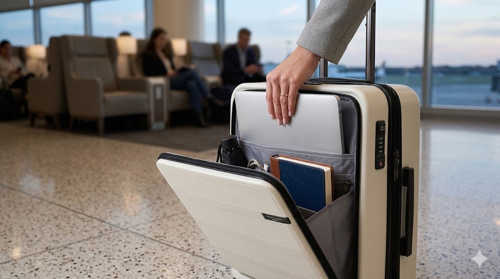 これが特に威力を発揮するのが、空港の待ち時間や移動中の新幹線内です。パソコンやタブレット、折りたたみ傘、ガイドブックなど、頻繁に出し入れするアイテムをフロント部分に収納しておけば、人前でスーツケースを全開にするという恥ずかしさや手間を感じることなく、スマートに取り出すことができます。
